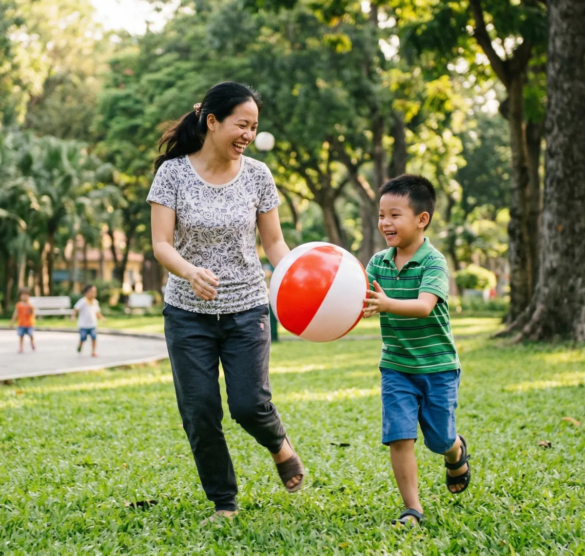 Thay vì sử dụng điện thoại không mục đích thì Hai mẹ con cùng có khoảng thời gian vui vẻ bên nhau